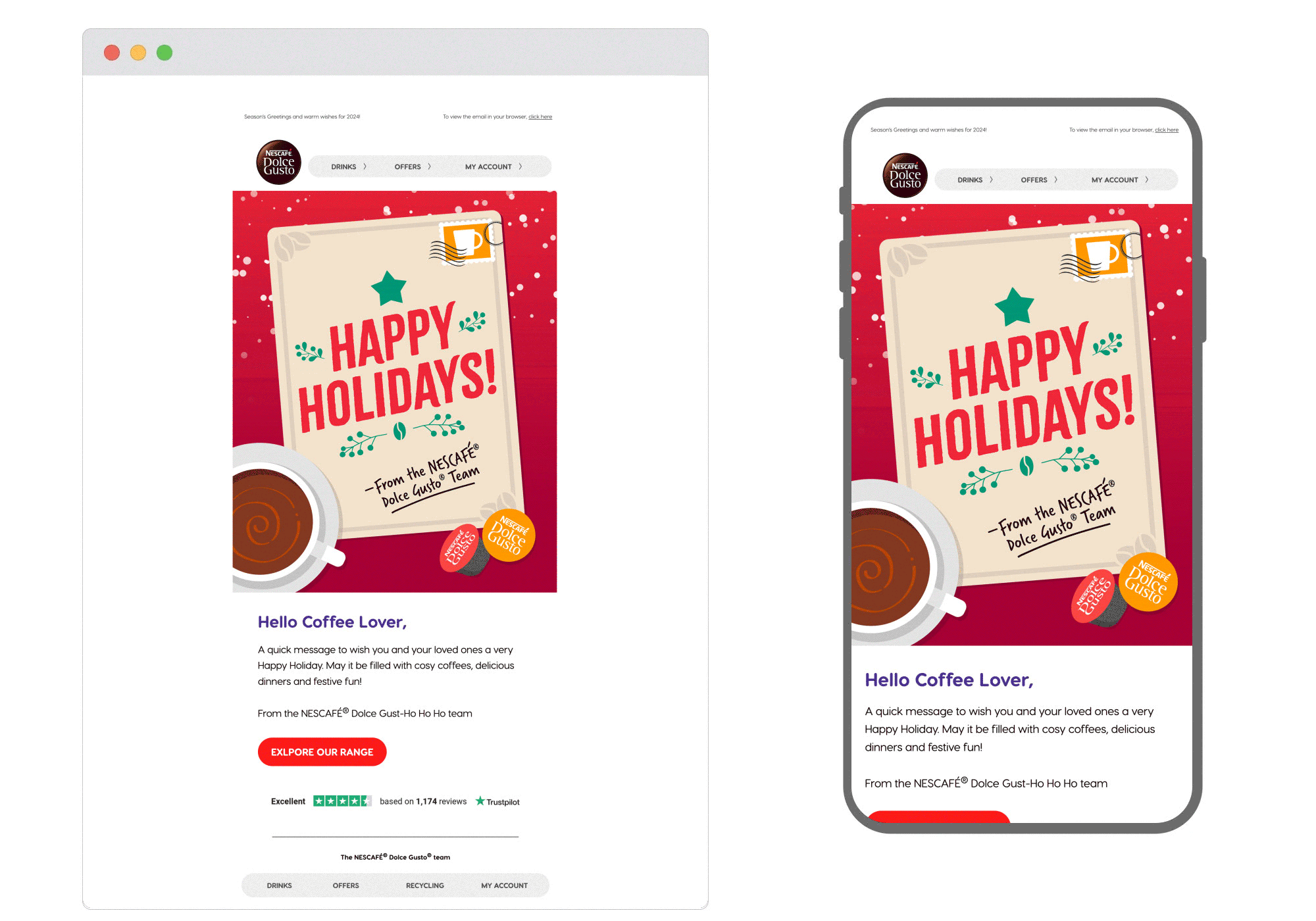 Dolce Gusto wanted to strengthen their relationship with their customers by sending season’s greetings on Christmas Day.