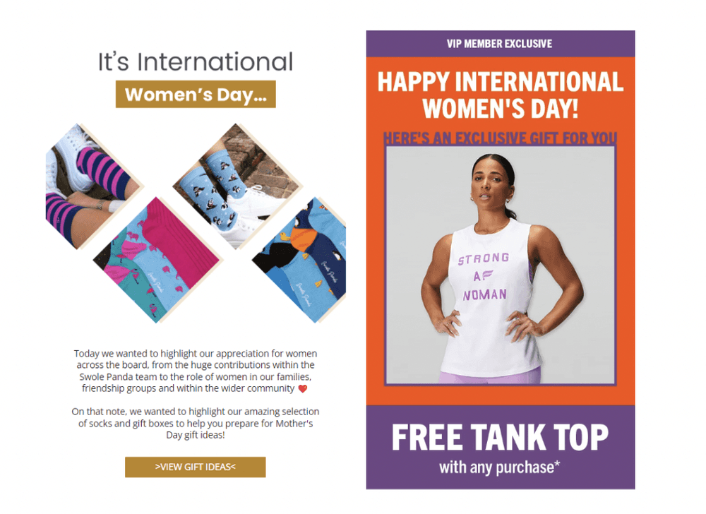 There were some definite ‘don’ts’ that we came across too. A token one-liner followed by a link to a selection of socks for Mother’s Day. A free gift with purchase for IWD when the email promoting it has zero messaging or context about the occasion and its importance. These unfortunately do feel more like utilising the awareness day as a marketing opportunity rather than paying attention to its purpose.
