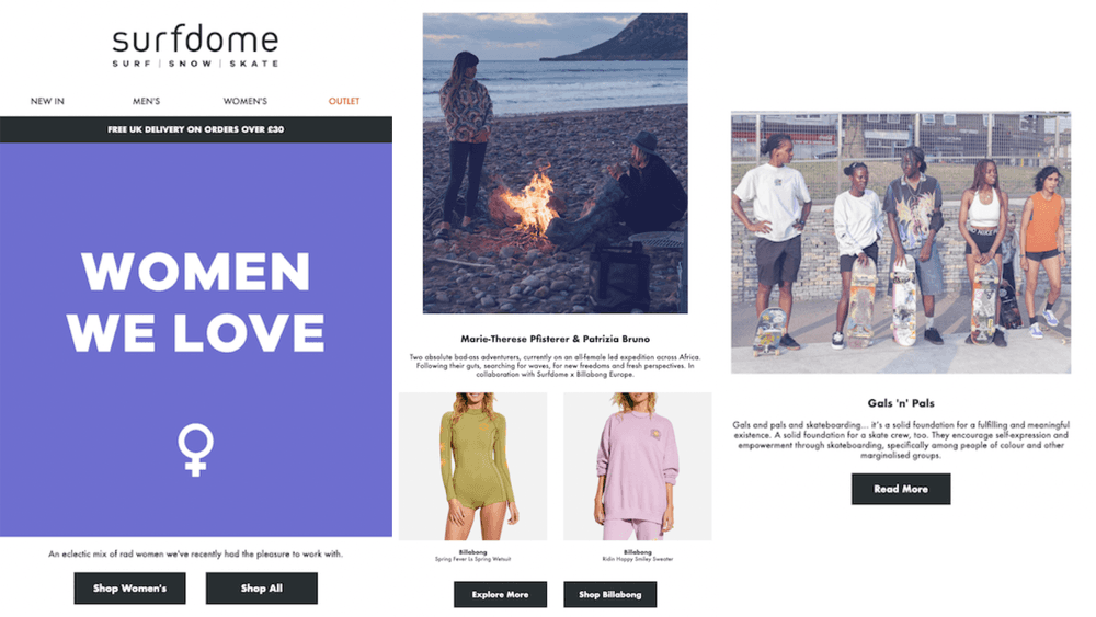 Others did similar by highlighting women in their industries who are leading the way. Surfdome linked to stories about female climate activists, explorers, surfers, skateboarders and more, whilst Taste of London celebrated talented women in the world of hospitality and food media.
