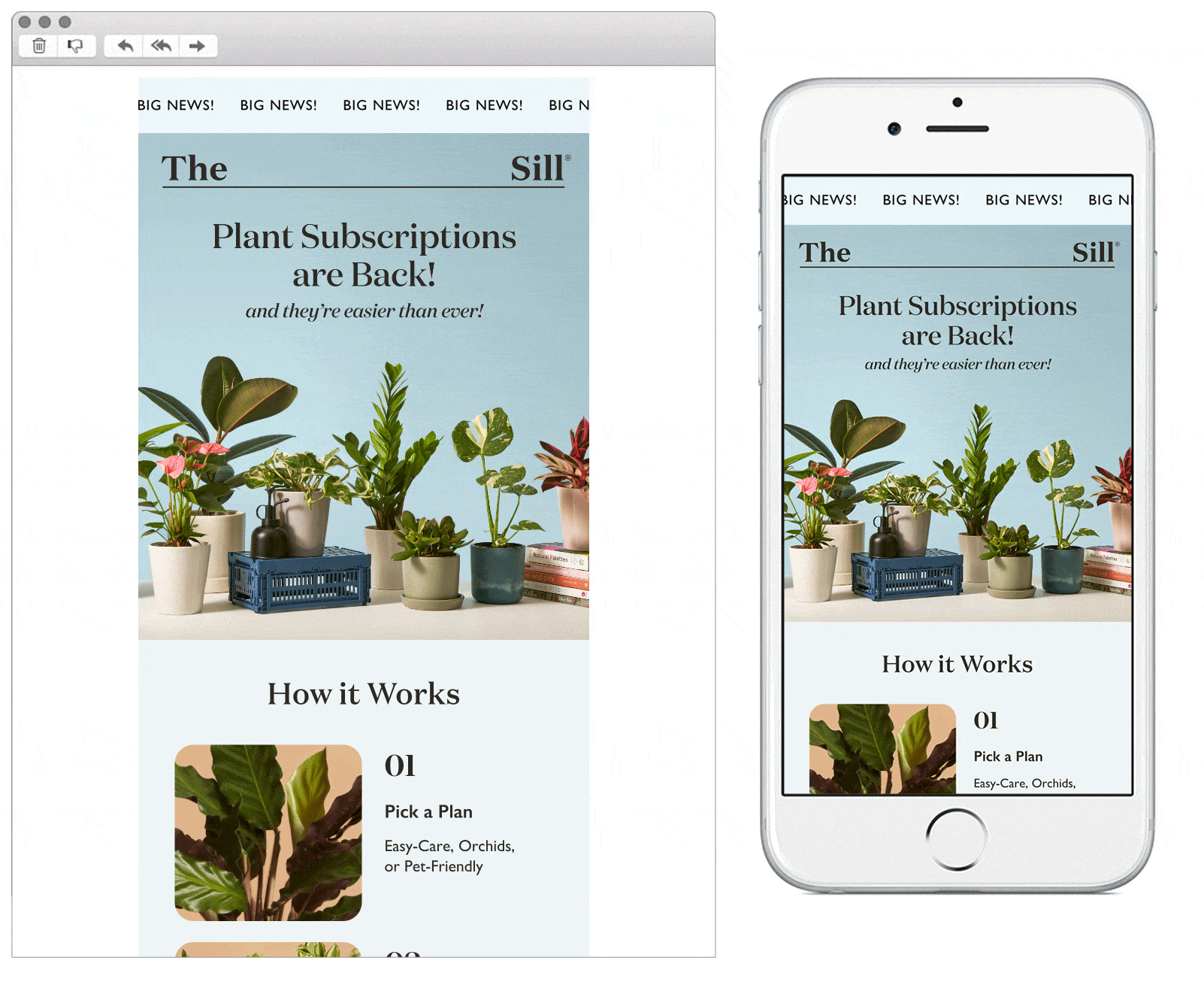 The eye is instantly drawn to the animated banner, a very effective hook without being too overbearing. Then follows pleasing images of plants as you scroll down, their details being shown beautifully through high quality photography and the clean, striking design. Once you’re interested in the products, it’s great that the step-by-step ‘How it Works’ module is so simple and inviting. A bloomin’ enjoyable email experience, on the whole.