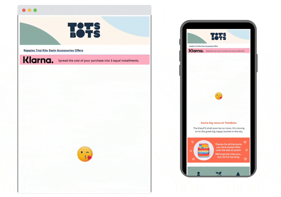 A product being discontinued isn’t always news that’s received well by consumers, so TotsBots have done their best to make it as cheerful as possible. If you thought you didn’t need to be waved at by a nappy from a bucket at any point in your life - well you were wrong, because this animation is frickin’ cute. The copy is informative in a lighthearted way, focusing on positive elements only. Nice work TotsBots, there’s no bum deal here!