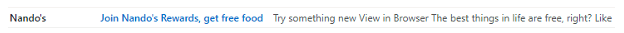 In most cases, email preheaders are about 85 to 100 characters in length, yet keeping them shorter, much like subject lines, means they are less likely to be cut off when viewed on mobile. According to Mailchimp, to make sure that preview text fits the widest range of devices, it needs to be between 30 and 80 characters. This example certainly got my attention in an extremely succinct way: