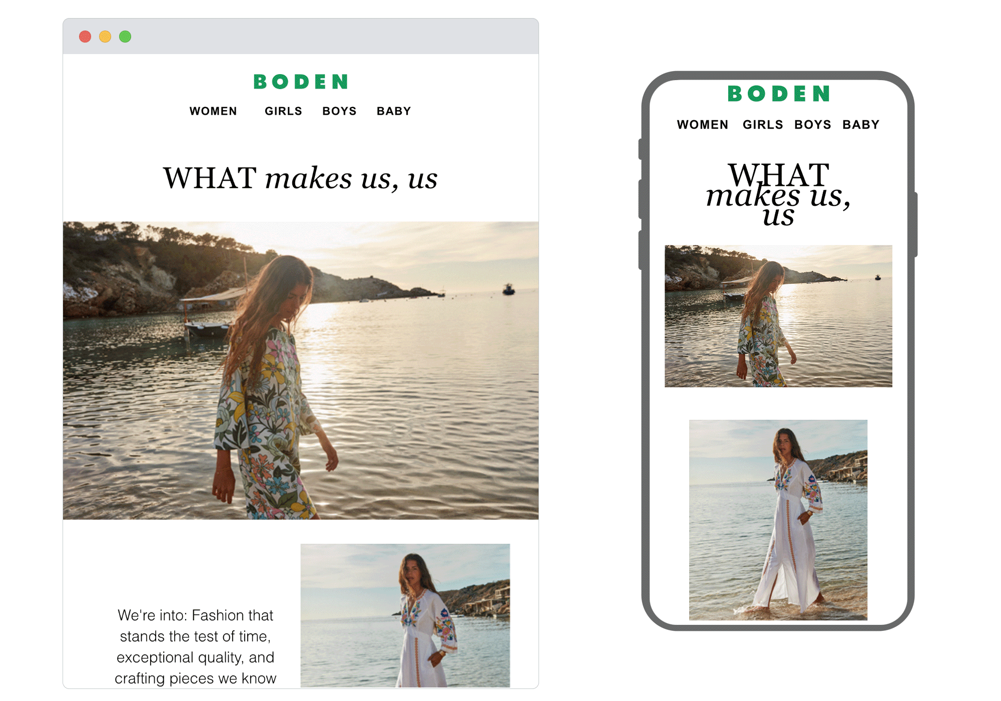 The key to a good welcome email is to remind the customer of the reasons they signed up without losing their interest. Boden has done just that with concise, clear messaging around their brand values. The assurance that they'll stick to their promises slots in naturally within the storytelling, as does their welcome offer. We’ll be sticking around on their mailing list for sure.