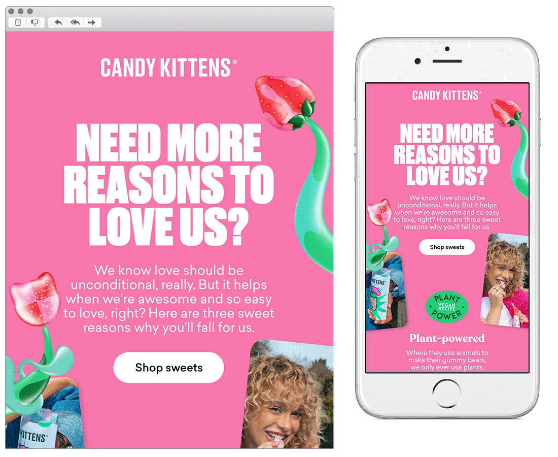 From the brand name to the colour palette and vibrant visuals…everything about Candy Kitten’s email is cohesive and joyful. We love the juicy shine effect on the details, and the strong storytelling alongside the layout encourages our eyes down as we scroll, making a strong case to buy the product. All in all, a deliciously sweet email.