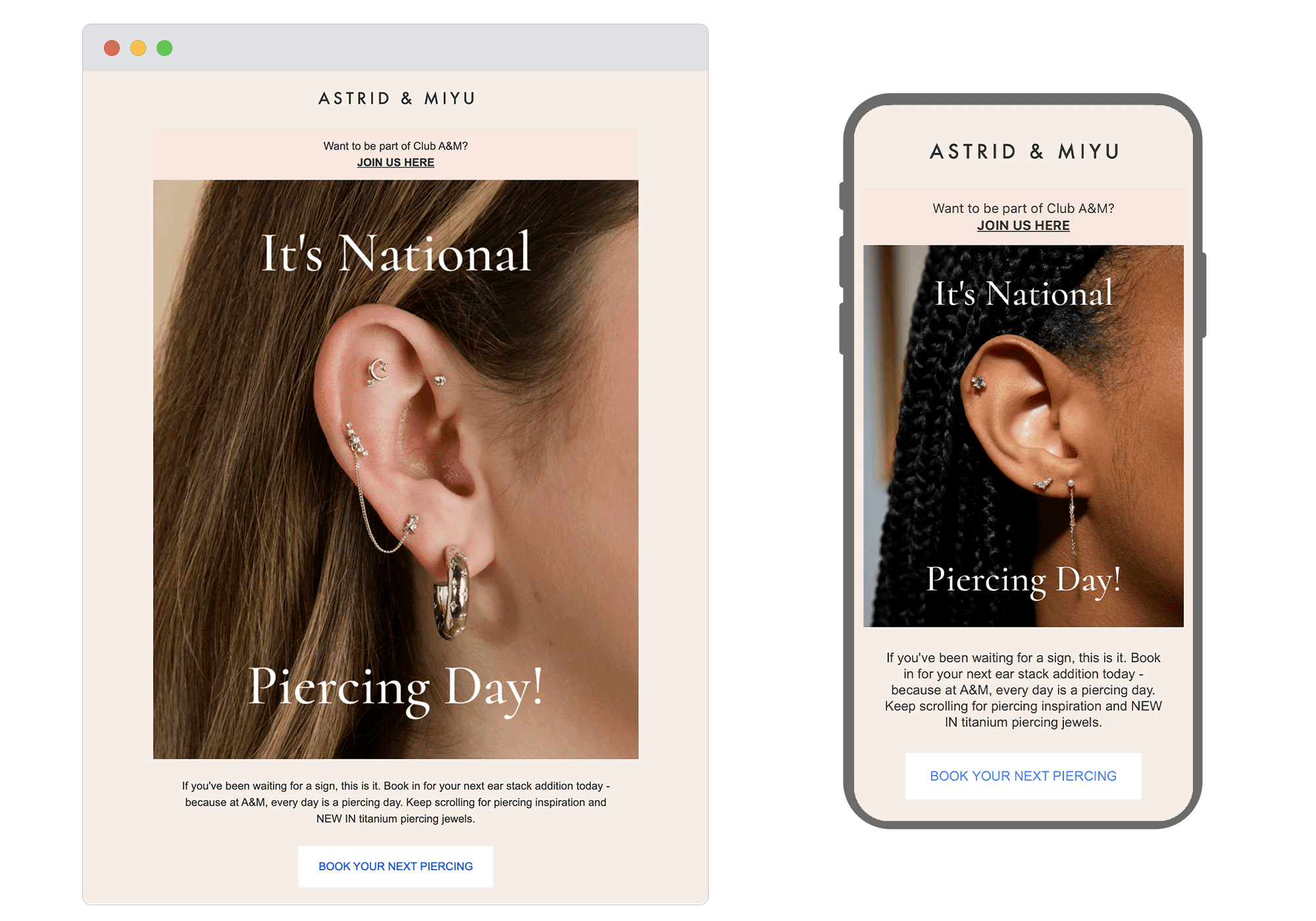 Now this is how you do occasion-based marketing. Astrid & Miyu have taken National Piercing Day and run with it. Educational guides, product inspiration, and clear CTAs work together in perfectly balanced design harmony. This email feels like a helpful friend with very good taste.