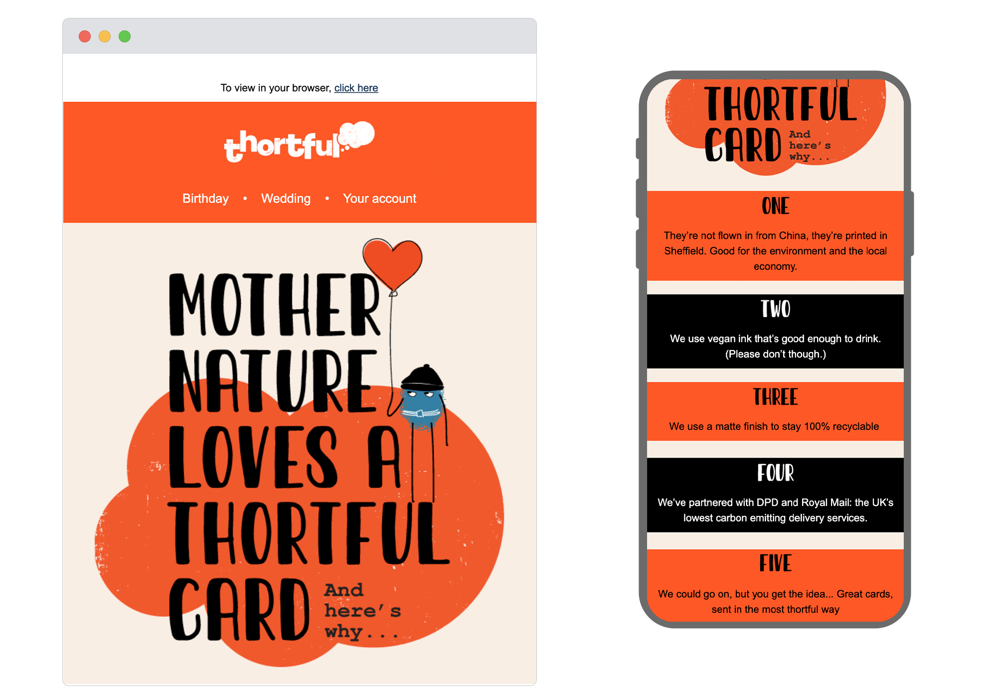 Sustainability is serious business, but we love how thortful has kept it light, but informative. Their message strips away the jargon and simply explains what ‘sustainable’ looks like for them. Without being preachy, the copy’s been pared back to the essentials so it hits home. This is brand values done right – authentic, digestible, and genuinely engaging.